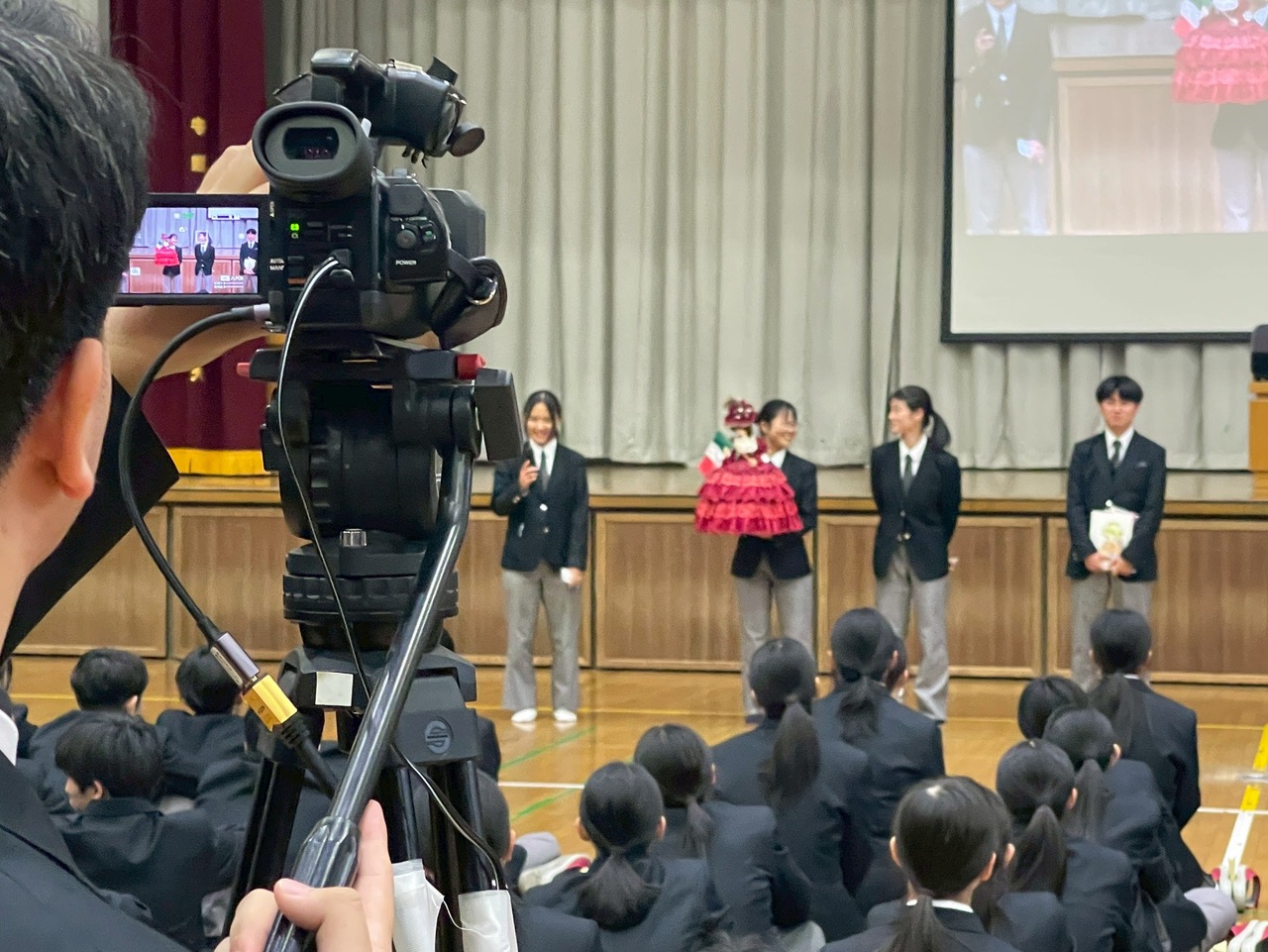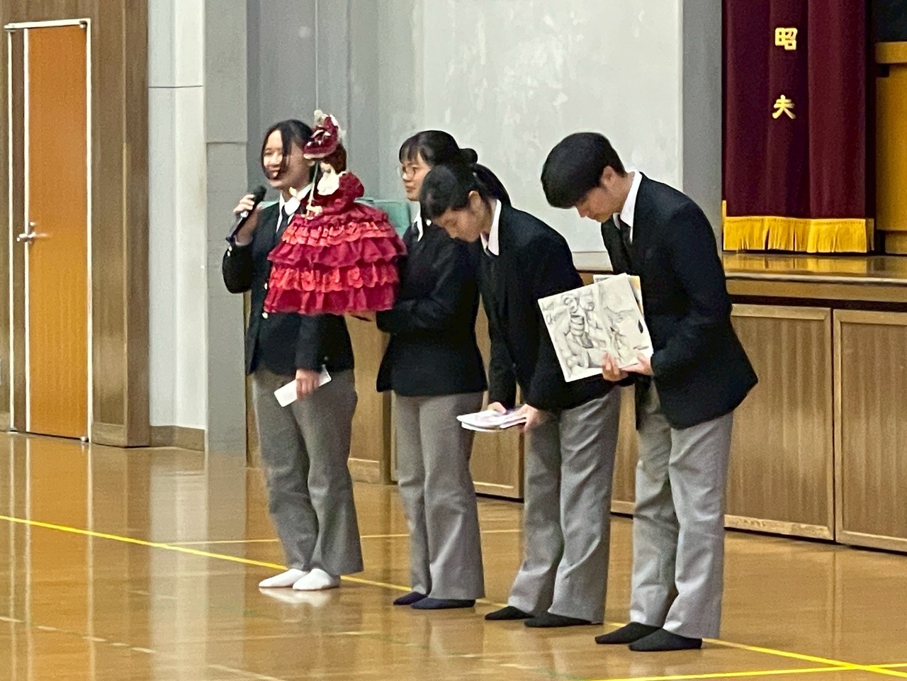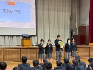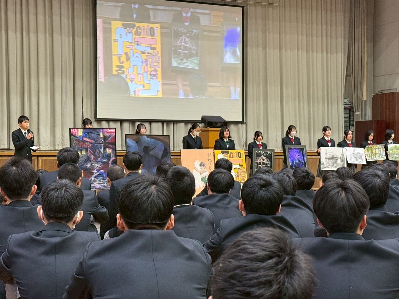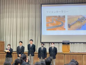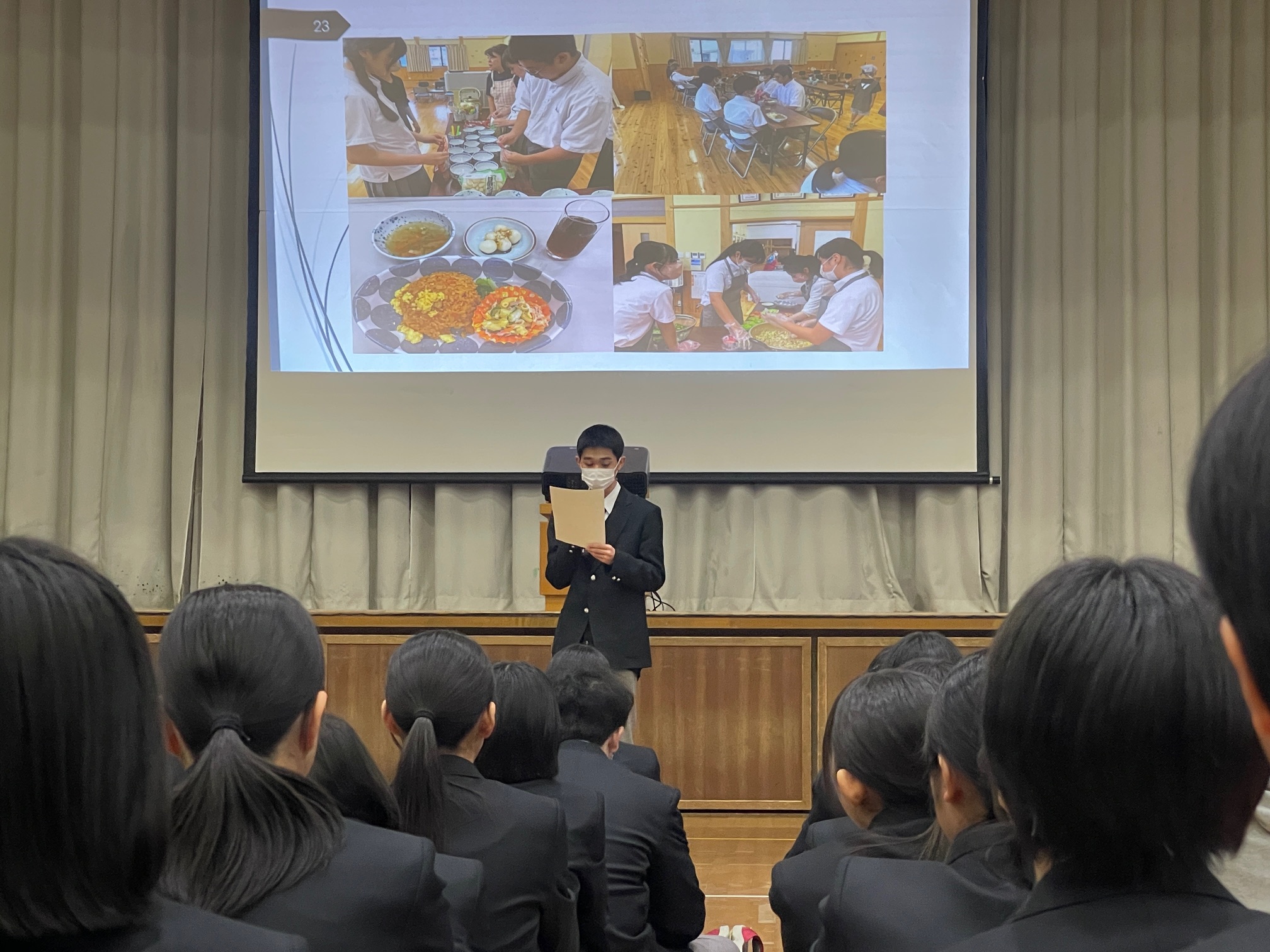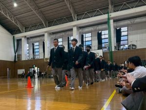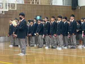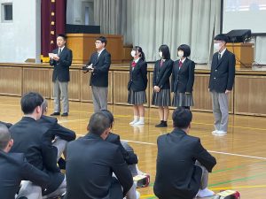 その後、生徒会長・水崎葵陽さん(C3)の歓迎の挨拶があり、その言葉を受け牛島瑛斗さん(M1)が新入生代表としてお礼のことばを述べました。牛島さんは上級生を前にした緊張するなか、立派に大役を務め上げてくれたので、生徒会としても有り難く感じています。