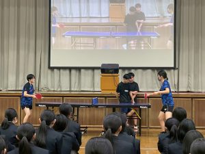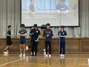 対面式が終わり、部活動紹介です。9つの文化部、9つの運動部の計18の部活動が発表を行いました。各部趣向を凝らした発表内容に、新入生たちもどの部活動に入るか悩ましくなったのではないでしょうか。