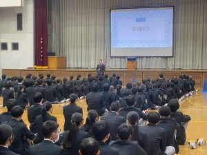 対面式に先立ち教頭先生から目標を持つ事の大切さを踏まえた話をしていただきました。生徒たちも教頭先生の熱い思いを汲みとって真剣な眼差しで話を聞いてくれていたように感じています。
