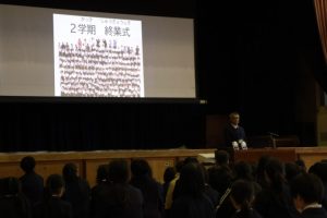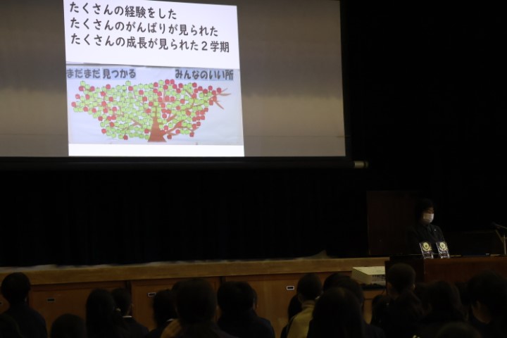 HOME > 学校のようす > イベントギャラリー > 12月24日 2学期終業式 12月24日 2学期終業式 入力日2026年1月26日 閲覧数46 長い長い2学期が終わりました。 体育大会に始まり、創立150周年記念事業、修学旅行などなどたくさんの行事の中で成長した2学期でした。 保護者の皆様、地域の皆様には大変お世話になり、ありがとうございました。 どうぞ良いお年をお迎えください。 前へ 一覧へ戻る 次へ