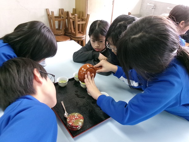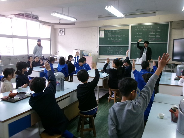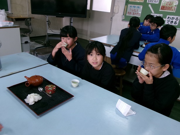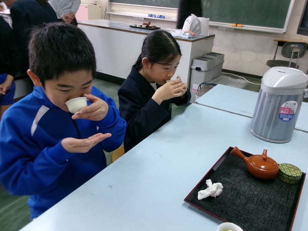 HOME > 学校のようす > イベントギャラリー > 2月4日(水)4年生「うれしの茶」のおいしい淹れ方教室 2月4日(水)4年生「うれしの茶」のおいしい淹れ方教室 入力日2026年2月5日 閲覧数7 2月4日(水)の3時間目に4年生でお茶の淹れ方教室を実施しました。佐賀農業協同組合から3名の講師の方が来られて、お茶の歴史や効能などを教えてくださいました。また、おいしいお茶の淹れ方を教わり、実際に飲みました。急須から複数の茶碗に順番に気を付けて注いだり、最後の一滴まで残さず注いだりと教わった通りにがんばっていました。お家でも、お茶を淹れるときには、教わったことを生かしてほしいです。よい体験ができました。 一覧へ戻る 次へ