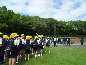 1日目は、平和学習で、語り部さんのお話を聞き、平和集会、フィールドワークを行いました。