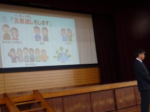 校長先生によるクイズが出され、子供たちと一問一答しながらお話が進んでいきました。
