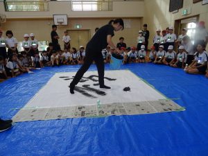 HOME > 学校行事のようす > 学校行事のようす > 体育大会に向けて 体育大会に向けて 入力日2025年9月25日 閲覧数84 体育大会に向けて児童はいろいろな面でがんばっています。 短い時間も無駄にせず、本番に向けて走り回っています。 今朝は、生活朝会のあとにサプライズがありました。 大型の応援旗をみんなで作ろうと校長先生からの提案があったのです。 養護教諭による書道パフォーマンスでしたためられた文字は「絆」です。 最後にもう一つアレンジを加えて完成予定です。 ぜひ体育大会で完成した応援旗をご覧ください。 前へ 一覧へ戻る 次へ