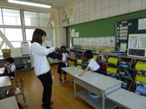 HOME > 学校行事のようす > 学校行事のようす > 給食1年生 給食1年生 入力日2024年9月2日 閲覧数534 9月2日(月)に、ぶんぶんテレビの取材を受けました。それは、「給食1年生」。1年生の給食の様子と、学級(授業)の様子を撮影し、放送されるとのことです。 事前に聞いてはいましたが、今日の1年生の子供たちはちょっぴり緊張気味。もちろん、担任の先生も!子供たち、カメラマンの方が来られてからは、しばらくはドキドキしていましたが、しばらくするとワクワクになりとてものびのびと楽しんでいましたよ。 放送は、10月の中旬だそうです。それまで、今日の様子をお子さんに聞かれて楽しみにしておいてくださいね。 前へ 一覧へ戻る 次へ