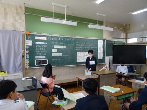 授業で習った言い方で自分の自己紹介や夢、あこがれの人を伝えました。