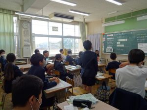 担当の先生から「何か尋ねたいことはありませんか。」の問いかけに6年生はたくさん手を挙げました。