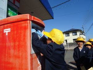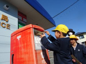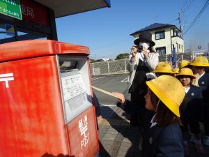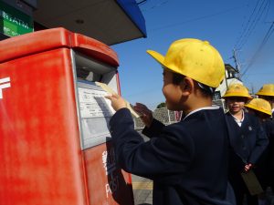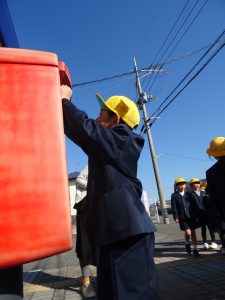 1年生は、5時間目、郵便局へ手紙を出しに行きました。