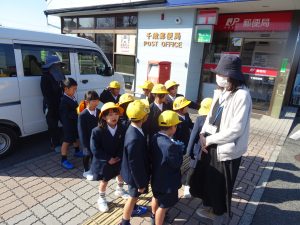 郵便局では担任の先生の話をしっかりと聞いて手紙の出し方を学習しました。