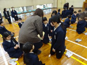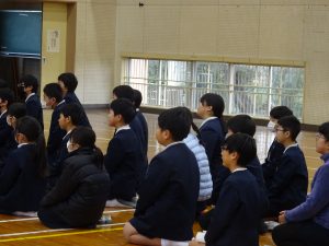 朝は気温が低く、体育館はとても寒かったのですが、全校児童が集まって始業式が行われました。