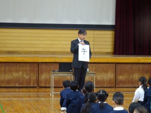 校長先生から「書いてあったことを本当のことにする(実現する)には自分で努力が必要だ。算数が楽しくなると書いてあって何もしなければ変わらない。足が速くなると書かれていてぼーっとしてても速くはならない。それぞれがあきらめずに努力をすることが大切だよ。」とお話されました。