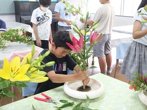 HOME > お知らせ > トピックス > 6.9 生け花体験【6年生】 6.9 生け花体験【6年生】 入力日2023年6月29日 閲覧数238 6年生は、室町文化の体験ということで、生け花に挑戦しました。季節の花をいかして 個性豊かな作品が完成しました。ネーミングも面白かったです。 前へ 一覧へ戻る 次へ