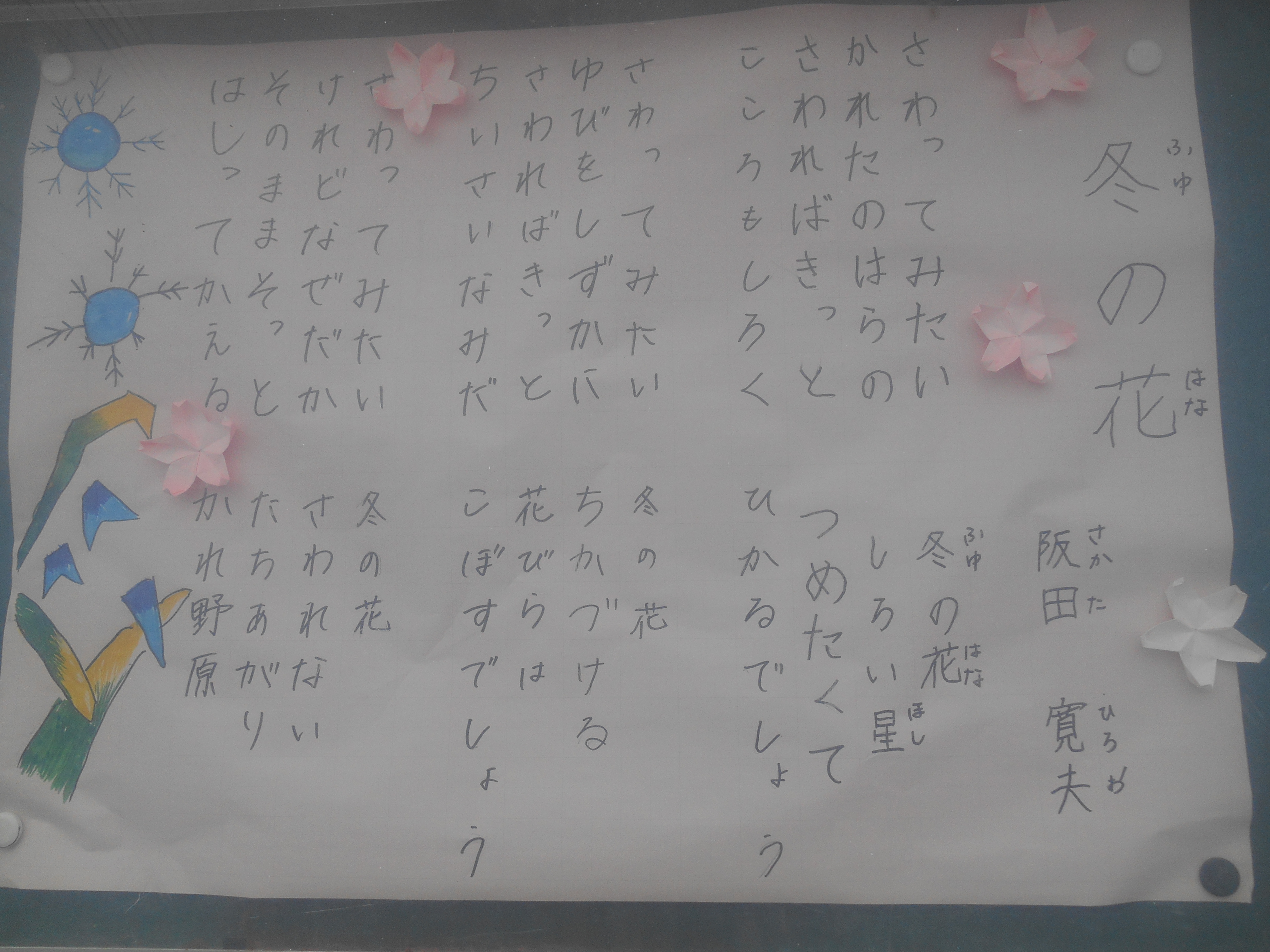 HOME > 福富っ子活動 > 児童の活動紹介 > 季節を感じる掲示物 季節を感じる掲示物 入力日2026年3月9日 閲覧数44 ひまわり学級の子どもたちが作った2月のカレンダーには、折り紙で作ったオニや福の神、節分豆などが飾られていて、とても素敵です。各学年の掲示板には、新年書き方会の作品が飾られています。玄関の掲示板には、冬の花という詩が掲示されています。子どもたちの作品は思わず立ち止まって見たくなるものばかりです。 一覧へ戻る 次へ