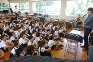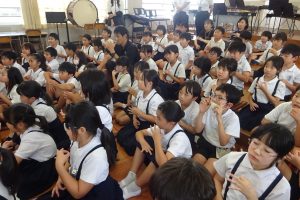 HOME > 学校生活 > ある日あの時 > 10.1 3年生リコーダー講習 10.1 3年生リコーダー講習 入力日2025年10月1日 閲覧数65 3年生のリコーダー講習が開かれました。講師は、子ども達が購入したメーカーから派遣された音楽の先生でした。いろいろな大きさのリコーダーに子ども達はびっくり。先生の演奏にうっとり。そして自分で出したきれいな音ににっこり。これから素敵な音楽を奏でてくれるようになると思います。 前へ 一覧へ戻る 次へ