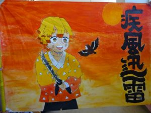 HOME > 学校生活 > ある日あの時 > 10.24 応援団旗 10.24 応援団旗 入力日2025年10月24日 閲覧数63 いよいよ明日は運動会です。午後には6年生が運動会の会場作りに汗をかきました。 今日は全学年、表現(ダンス)の最後の仕上げをしました。本番に向けて体も心も準備できたようです。明日は元気に登校してほしいと思います。各チームの応援団の旗も完成しました。 一覧へ戻る 次へ