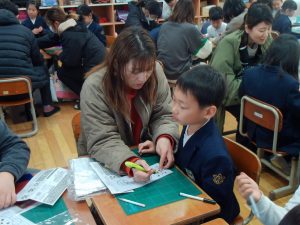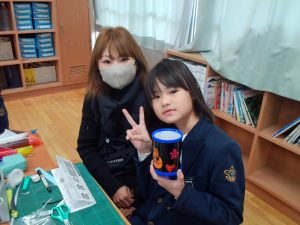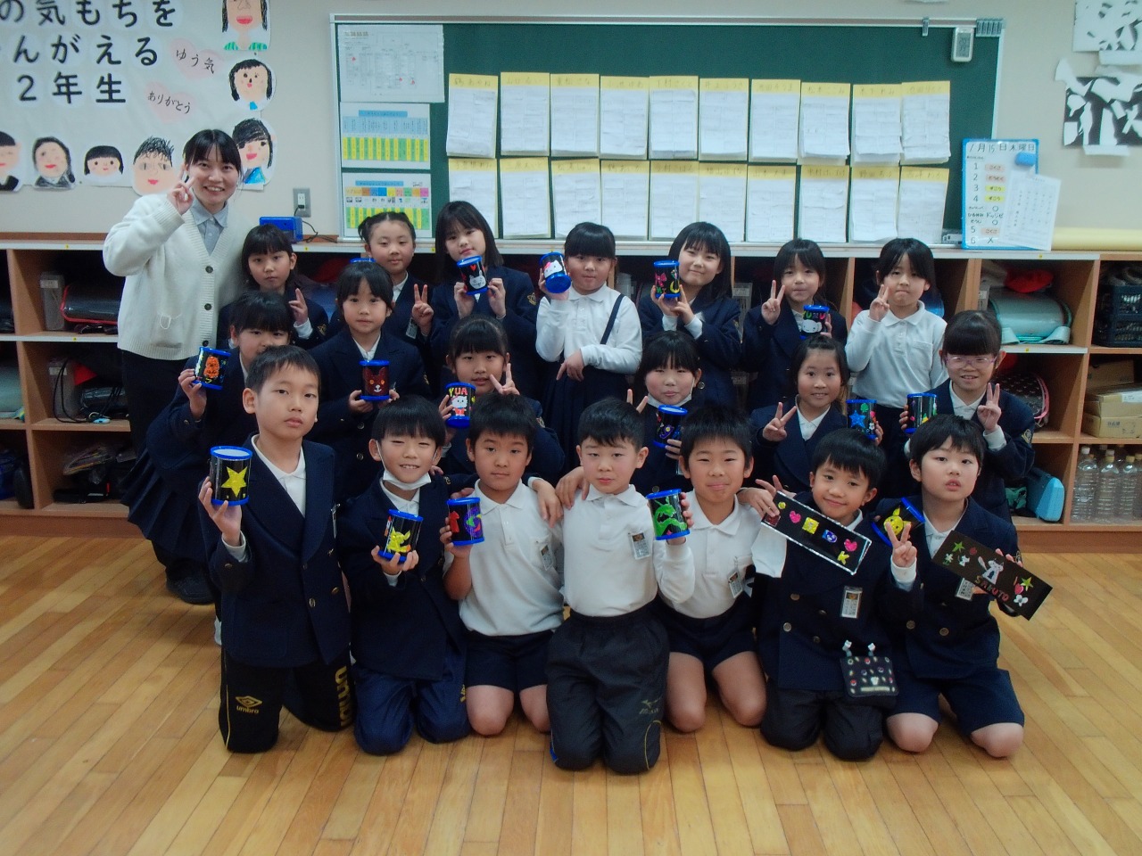 1月15日(木)の2、3時間目に2年生の学年行事がありました。学級役員の方が中心となって進行をしてくださり、お家の人と一緒に「ステンドグラスペン立て」を作りました。どんなペン立てにしたいかデザインを考え、お家の人にカッターで絵を切り抜いてもらいました。子どもたちにあとで感想を聞いてみると、「お家の人と一緒にペン立てを作ることができて嬉しかった。」「ペン立て作ってくれてありがとう。」「また一緒に何か作りたいな。」という感想がたくさんありました。