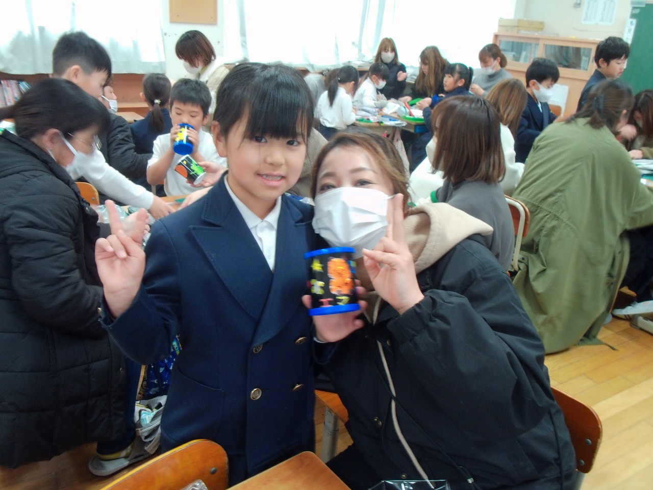 その日は授業参観もあり、お家の人と3時間も一緒に過ごすことができて子どもたちは嬉しそうでした。子どもたちのために、いろいろな要望に答えながら素敵なペン立てを一緒に作ってくださりありがとうございました。お家の方と一緒に過ごす時の子どもたちは、表情がとてもキラキラしていて、とても楽しい時間となりました。役員の皆様、企画から当日までありがとうございました。また、参加してくださった 保護者の皆様、お忙しい中ありがとうございました。