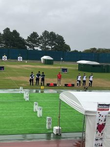 70m先にある直径122cmの標的に矢を射るのですが、見事に真中の10点を射る選手も多く、「10点」という場内アナウンスがあると、子ども達も大きな声援と拍手を送っていました。