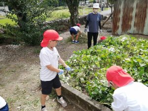 HOME > 学校紹介 > 日々の様子 > 生活科の畑作業 生活科の畑作業 入力日2024年9月26日 閲覧数421 9月25日に、2年生が「夏野菜の片付け」「サツマイモの蔓返し」「冬野菜栽培に向けた準備」を行いました。暑さも随分落ち着いてきましたが、熱心に作業を行う子どもたちの額には汗が光っていました。 夏野菜は収穫時期が夏休みと重なってしまったこともあり、子どもたちの口に入ることが少なかったですが、サツマイモや冬野菜ではたくさん収穫し、子どもたちが美味しく食べることができるよう、お世話を頑張ってほしいと思います。 前へ 一覧へ戻る 次へ