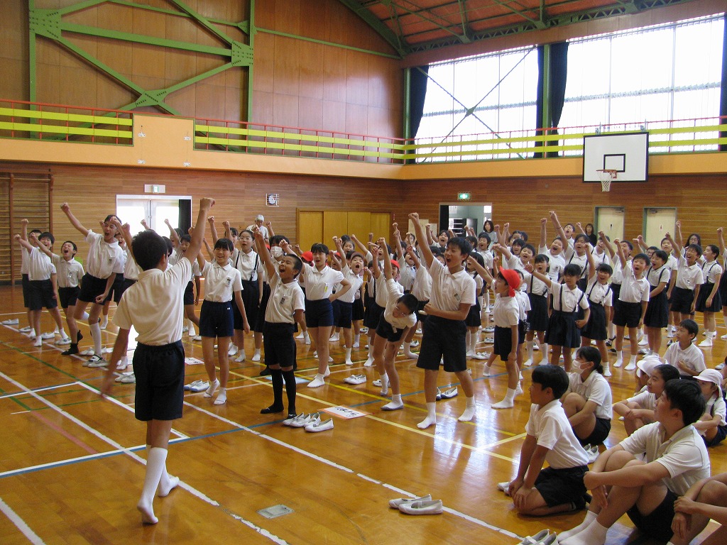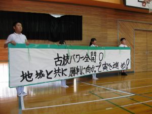 今年の運動会スローガンは「古枝パワー全開!地域と共に勝利に向かって突き進め!」です。地域と合同の伝統ある運動会。地域の皆さんと一緒に優勝目指して頑張りぬくことを誓いました。