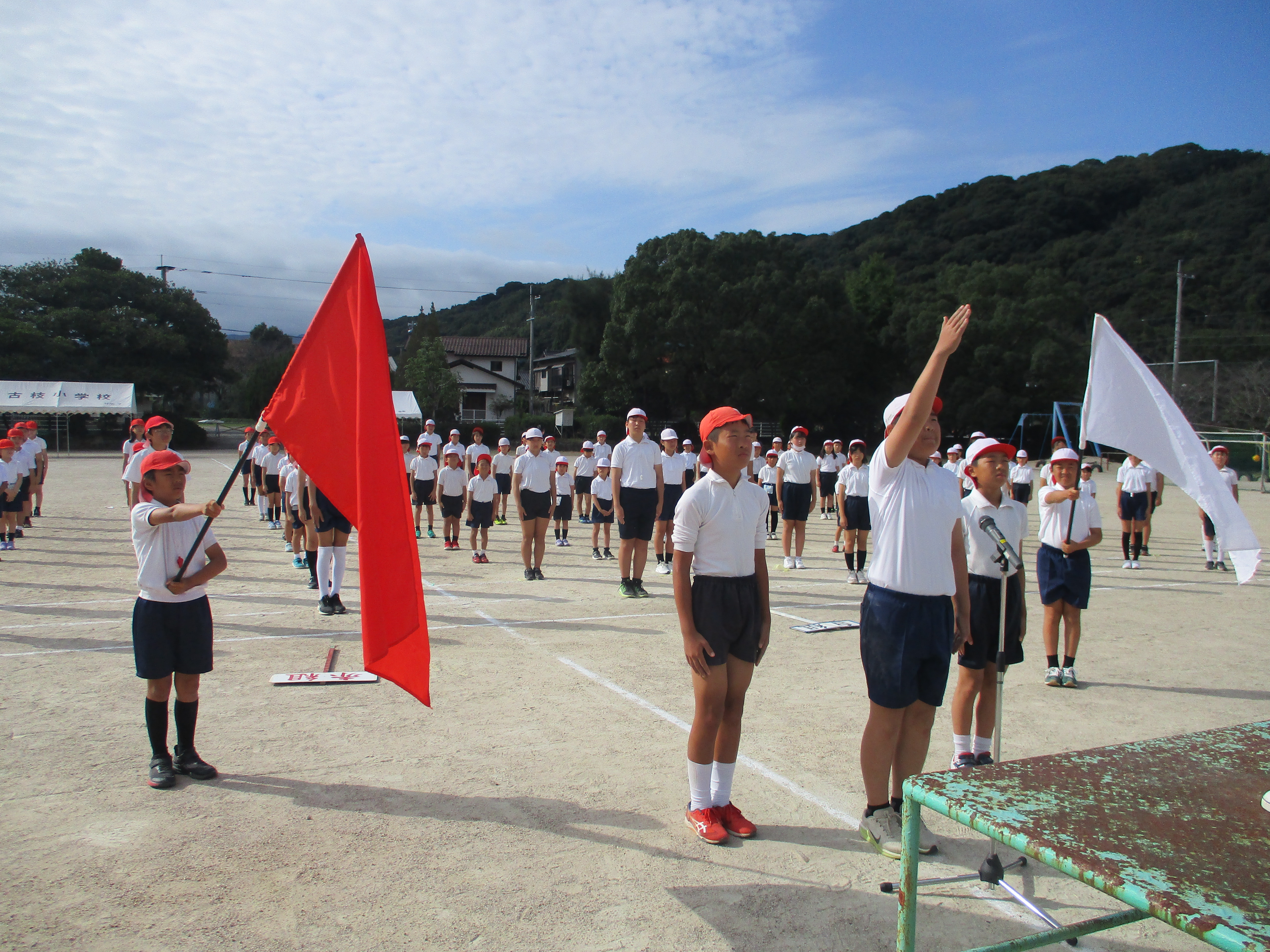 10月14日から運動会の練習が本格的にスタートしました。初日は、全体練習が行われ、当日の開会式の流れに沿って実行委員の児童の動きや選手宣誓、ラジオ体操などの動きを確認しました。練習初日とは思えないほど子供達の動きが素晴らしく、運動会に向けての気持ちの高まりが感じられる練習となりました。