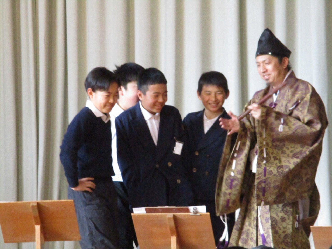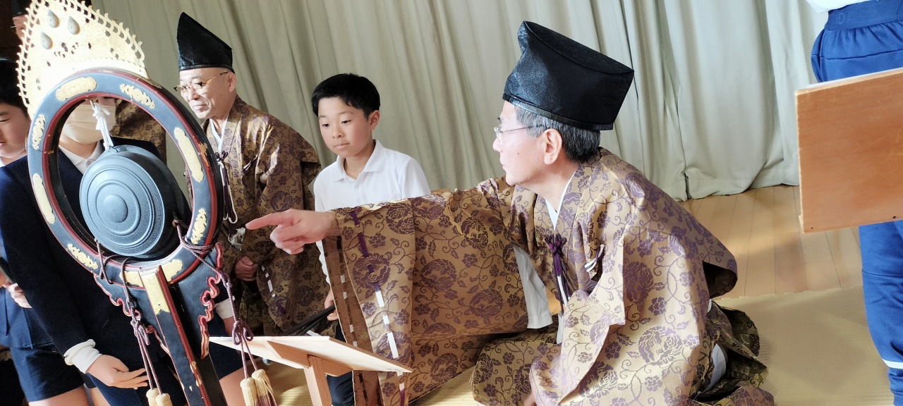 祐徳伶人会の皆様は、年に8回、祐徳神社の神事にて演奏されているそうですが、現在は「後継者不足」という課題も抱えていらっしゃるとのことでした。古枝小では毎年6年生が演奏を聴く機会を設けています。地域の誇りである伝統を肌で感じたこの経験を通して、子どもたちの中から、この伝統を受け継ぐ担い手が育ってくれることを願っています。