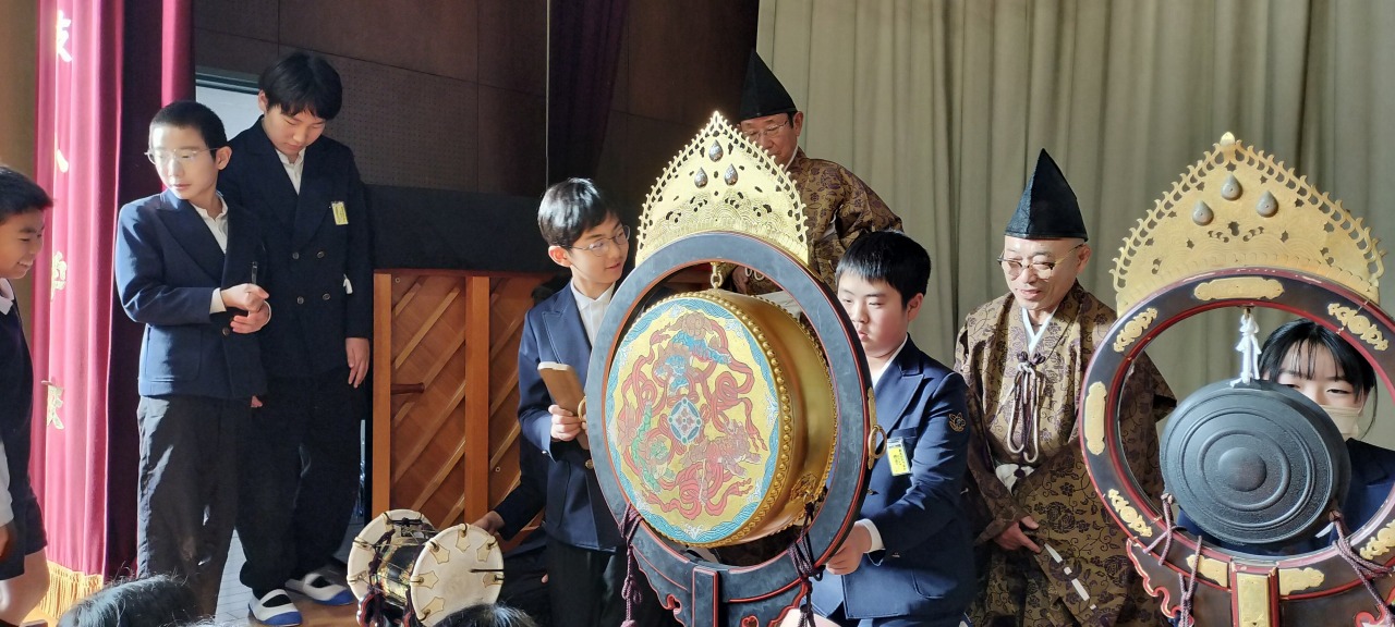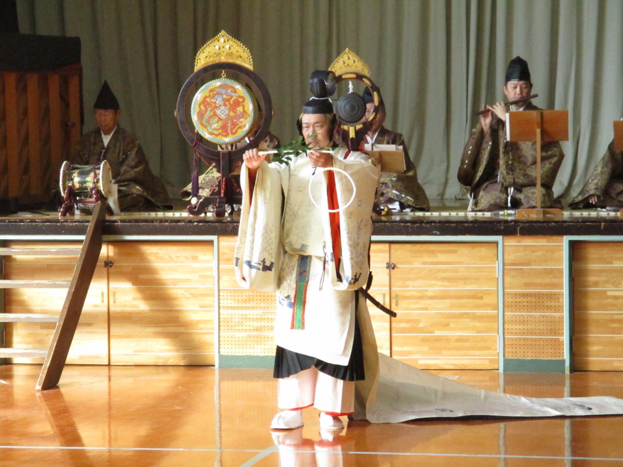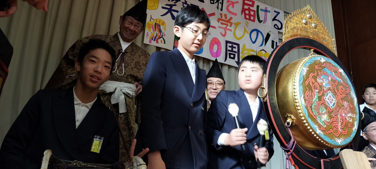 神社やお正月などに耳にする機会のある雅楽ですが、間近で聴く「生演奏」は初めてという児童が多く、独特の響きと迫力に、皆真剣な表情で聴き入っていました。