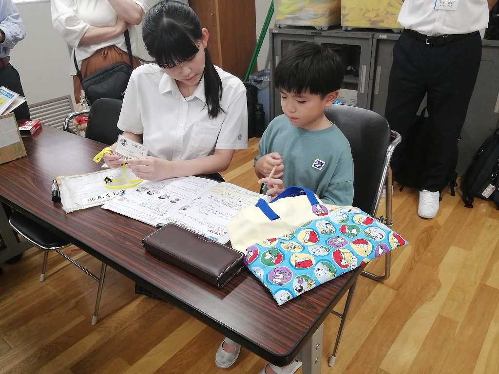 1日目はマンツーマンで、2日目は2対1での学習となり、約1時間半の間、小学生の子ども達は高校生のお兄さんお姉さんから勉強を教えてもらい、集中して宿題に臨んでいました。おかげで、夏休みのドリルの目途が立ったという子がほとんどでした。