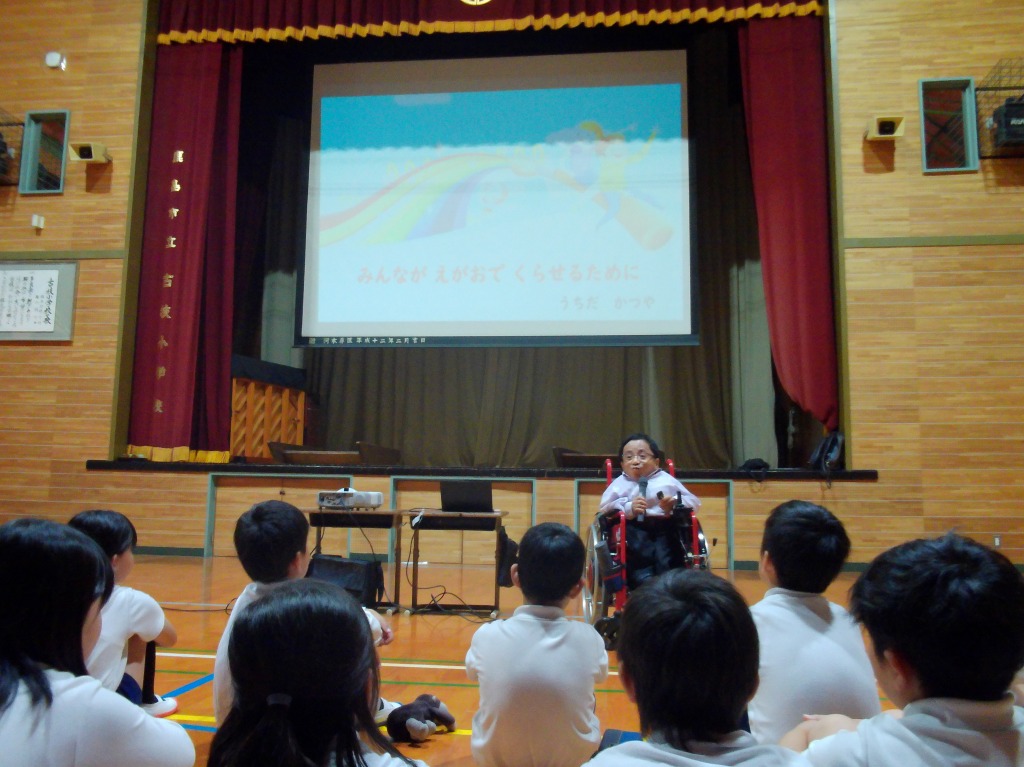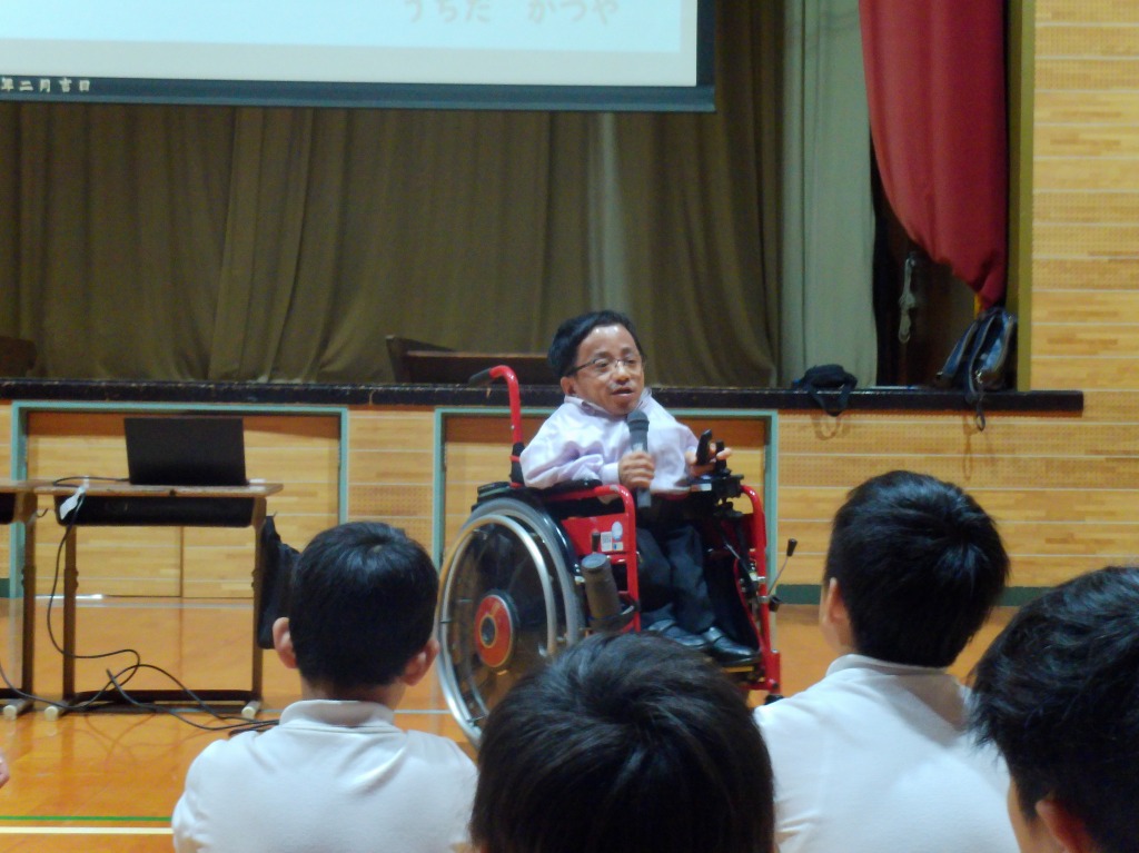 4年生は、11月6日(木)にUD(ユニバーサルデザイン)について学習しました。「〇〇な障がい者の会」会長の内田勝也様をお招きし、「みんなが笑顔で暮らせるために」というテーマでお話しいただきました。