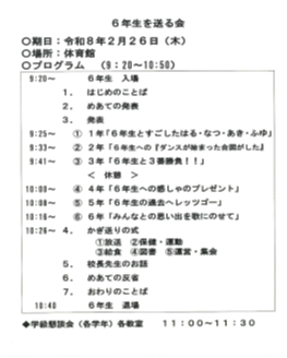 「6年生を送る会」「鍵送りの式」