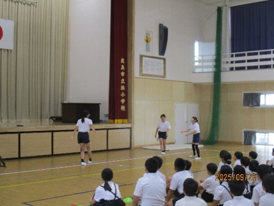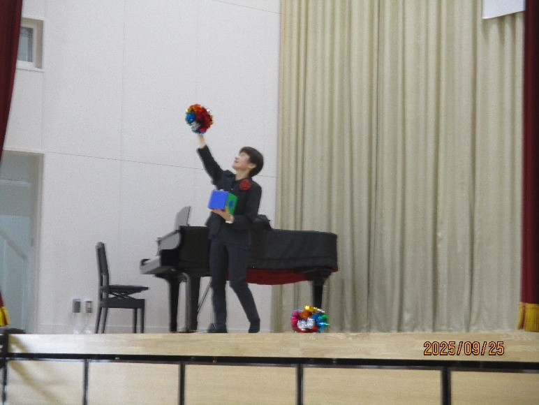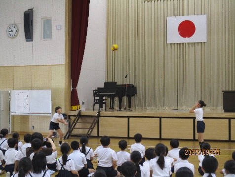 HOME > 学校生活 > ある日の風景 > 全校特技自慢集会 全校特技自慢集会 入力日2025年9月25日 閲覧数64 9月25日(木)に体育館で特技自慢集会をしました。出場については、希望者で、いろいろなジャンルでの発表がありました。多くの人の前で発表をすることは、とても勇気のいることですが、多くの児童がチャレンジしました。毎年恒例の?職員のマジックショーもあり、笑顔いっぱいのひとときとなりました。 前へ 一覧へ戻る 次へ