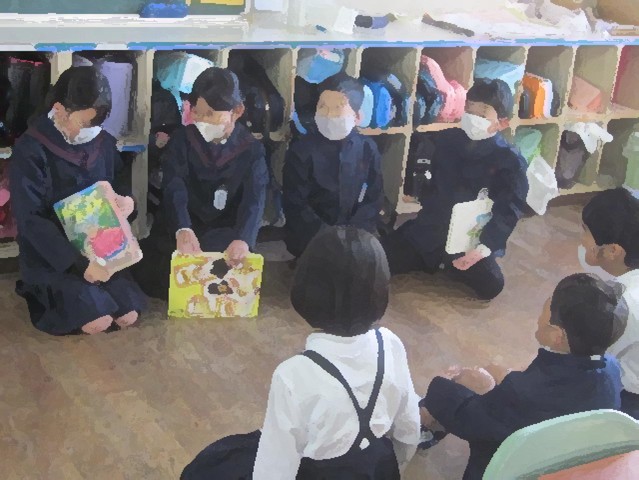 HOME > 学校生活 > ある日の風景 > 読書集会 読書集会 入力日2025年12月19日 閲覧数11 12月12日(金)、朝の時間に低・中・高学年の3つに分かれて読書集会をしました。低学年の部は小グループに分かれて2年生が1年生に読み聞かせをしたり、中・高学年は、おすすめの本の紹介をしたりしました。この活動は読書活動の推進や異学年交流、相手を意識して話す力の育成などを目的として実施しています。 前へ 一覧へ戻る 次へ