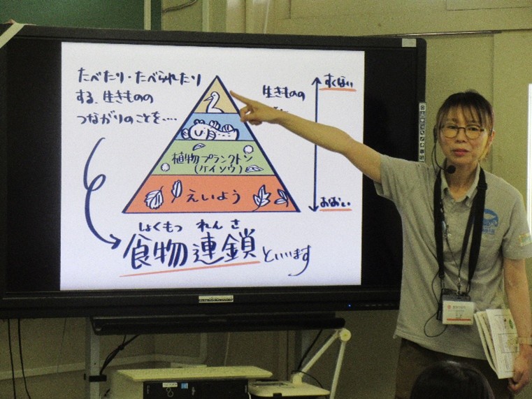 HOME > 学校生活 > ある日の風景 > 3年生自然のつながり 3年生自然のつながり 入力日2025年9月24日 閲覧数42 9月11日(木)にラムサール条約推進室の方を講師として、有明海に生息する生き物のつながりについて3年生が学習しました。先日の干潟体験の記憶も新しく、お話のなかでいろいろな生き物の名前がでてくると、うなずきながら聞いていました。 前へ 一覧へ戻る 次へ