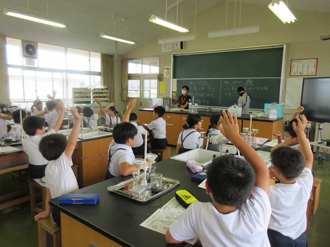 HOME > 学校生活 > ある日の風景 > 3年生浄化作用実験 3年生浄化作用実験 入力日2025年9月30日 閲覧数43 9月25日(木)に、3年生が総合的な学習の時間に鹿島市ラムサール条約推進室の方から「有明海の潟やあさり貝、かきなどの生き物が海の水をきれいにしてくれている」ことについて、実験を使って教えていただきました。 前へ 一覧へ戻る 次へ