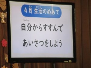 始業式では、校長から学校教育目標について、次のような話をしました。