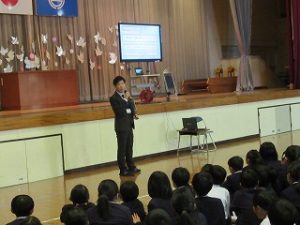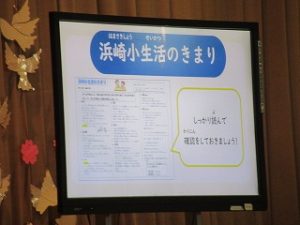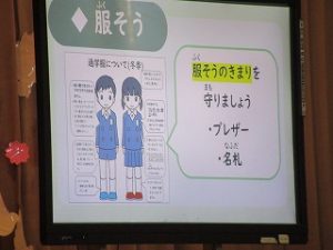 また、始業式の後は、「生活の話」「体育のきまりの話」が、担当の先生方からありました。みんなでルールを守って、安心・安全な学校にしていきましょう。