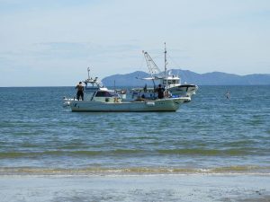 海うみ大好き集会の後は、みんなで清掃活動を行い、地引網体験です。