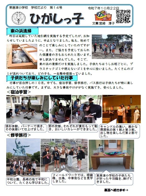 HOME > お知らせ > 学校便り > 学校だより ひがしっ子14 学校だより ひがしっ子14 入力日2025年10月30日 内容学校だより ひがしっ子14 閲覧数11 ファイル ファイルダウンロード 前へ