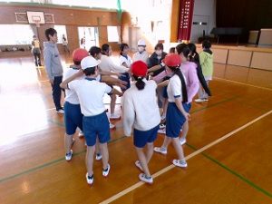 6年生 体育「なわとび」8の字跳びでは団結力を発揮して最高記録を出しました。