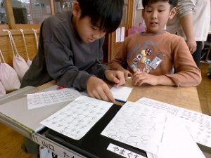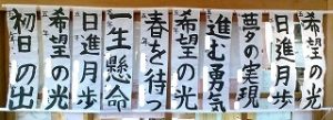 HOME > 学校紹介 > 子どもたちの様子 > 1月19日(月)の様子 1月19日(月)の様子 入力日2026年1月19日 閲覧数26 習字の作品が新しくなっていました。 1年生 音楽 音楽劇の練習 どこで披露するのかな。 2年生 書写 硬筆の清書 一筆入魂 3年生 社会 「市の様子とくらしのうつりかわり」駅や神社の昔の写真を見ました。 4年生 総合 高齢者の方と一緒に遊ぶものを手作りしていました。 5年生 書写 毛筆「出発」うまく書けたようです。 6年生 音楽 卒業式で歌う歌の歌詞の意味や歌への思いを考えました。 前へ 一覧へ戻る 次へ