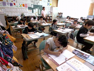 3年生 150周年記念集会の練習。大きな声が体育館に響きました。