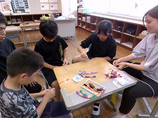 4年生 図工 「夢の乗り物を作ろう」ゴムを動力にした乗り物を作ります。どんな車が完成するのか楽しみです。