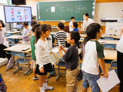 1年生 ALTと一緒に英語で遊びました。自己紹介や数のゲームでした。