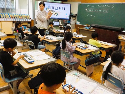 1年生 音楽 ド~ソの音を鍵盤ハーモニカで吹きました。