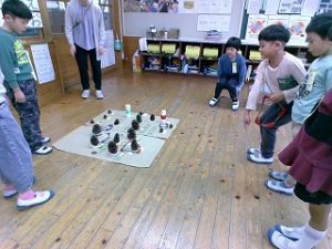 HOME > 学校紹介 > 子どもたちの様子 > 11月25日(火)の様子 11月25日(火)の様子 入力日2025年11月30日 閲覧数22 昨年度まで本校にいらっしゃった先生のご厚意で、焼き芋をしました。 じんわりと熱が伝わった芋は甘みがあり、とてもおいしかったです。 1年生 生活科 秋のおもちゃで遊ぶルールづくり 2年生 花まるタイム なぞぺー 3年生 体育 走り幅跳び 4年生 算数 「わすれてもだいじょうぶ」関係図を使って考えます。 5年生 音楽 合奏 6年生 算数 比例と反比例 考えを交流中 前へ 一覧へ戻る 次へ