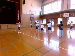 3年生 体育「リングゲーム」何時間かやっているので上手になっています。今日は、ドリブルがたくさん見られました。