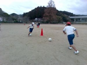 4年生 体育「サッカー」練習やミニゲームを通して、蹴り方やチームワークを向上させます。
