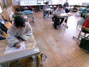 HOME > 学校紹介 > 子どもたちの様子 > 2月18日(水)の様子 2月18日(水)の様子 入力日2026年2月18日 閲覧数25 1年生 体育 「ボールあそび」前を向いたままボールを受け止めるのが、難しそうです。 2年生 算数 算数検定に向けて、復習、復習。 3年生 書写(硬筆)1ねんのまとめ 4年生 国語 「調べたことをほうこくしよう」明日が報告会だそうです。 5年生 算数 「速さ」 自分に合った問題解決の工夫をしています。 6年生 理科 1年のまとめ 午後は、全校一斉の算数検定でした。 一覧へ戻る 次へ