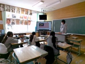 6年生 社会「日本とつながりの深い国々」国旗クイズでは、次々に国の名前を当てていました。