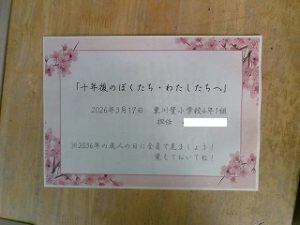 HOME > 学校紹介 > 子どもたちの様子 > 3月17日(火)の様子 3月17日(火)の様子 入力日2026年3月17日 閲覧数19 1年生 生活科 もりもり書いています。 2年生 図工「版画」紙版画の版づくり 3年生 体育 「サッカー」よく動いています。 4年生 算数 復習 10年後の自分に向けたメッセージ集ができていました。 5年生 昨日の版画が完成していました。美しい! 前へ 一覧へ戻る 次へ